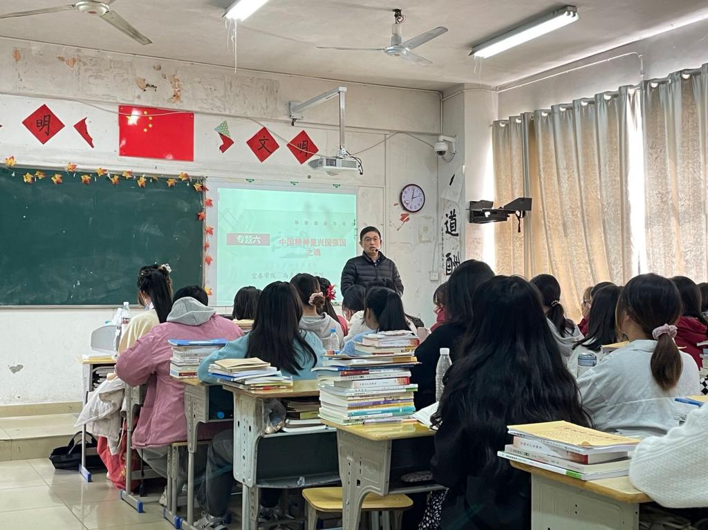 11月9日下午2:00,宜春学院马克思主义学院博士、副教授王永乐走进师范学院小学道德与法治教育21301班,为同学们讲授《中国精神是兴国强国之魂》专题,为开云官网马克思主义学院教师和试点班级的同学们呈现了一堂精彩的精品示范课。