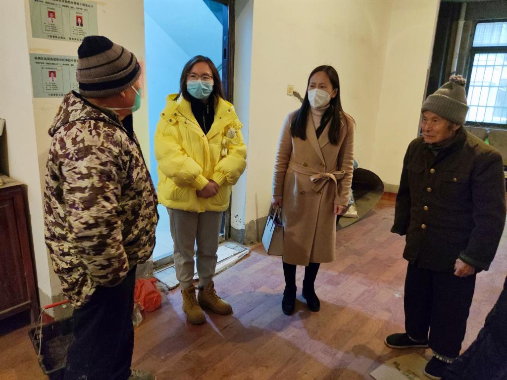 本站讯(马克思主义学院 张保揭)恰逢元旦来临之际,为联系群众、关心群众,发挥党员的先锋模范作用,推进党员“双进双服务”工作,2022年12月29日下午,机关第三党支部党员代表在支部书记彭慧洁的带领下,前往岐山社区水寨小区慰问困难群众易砥汉,用实际行动传递温情,践行初心使命。