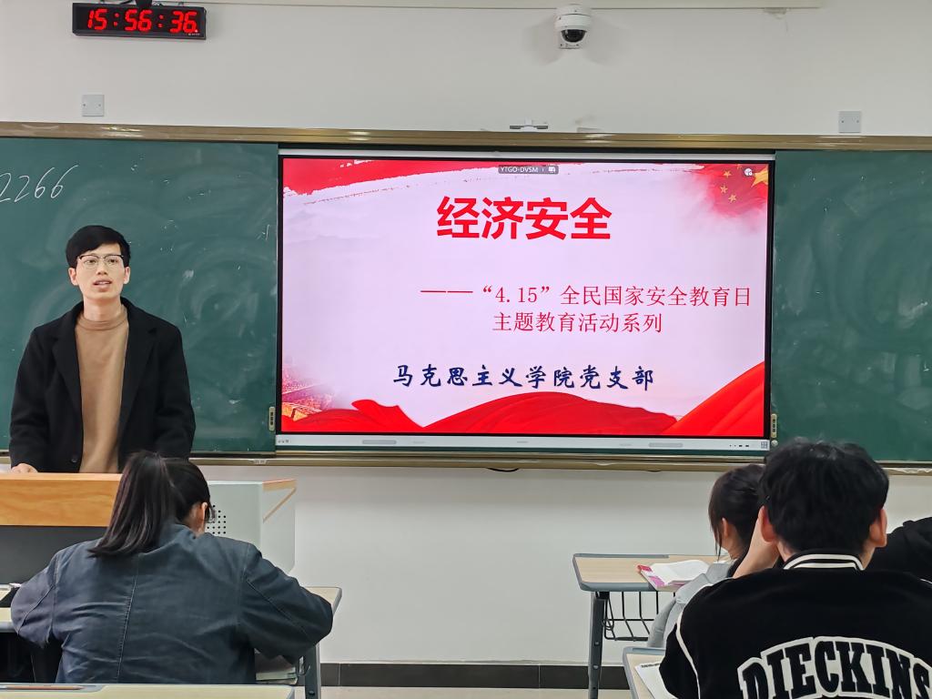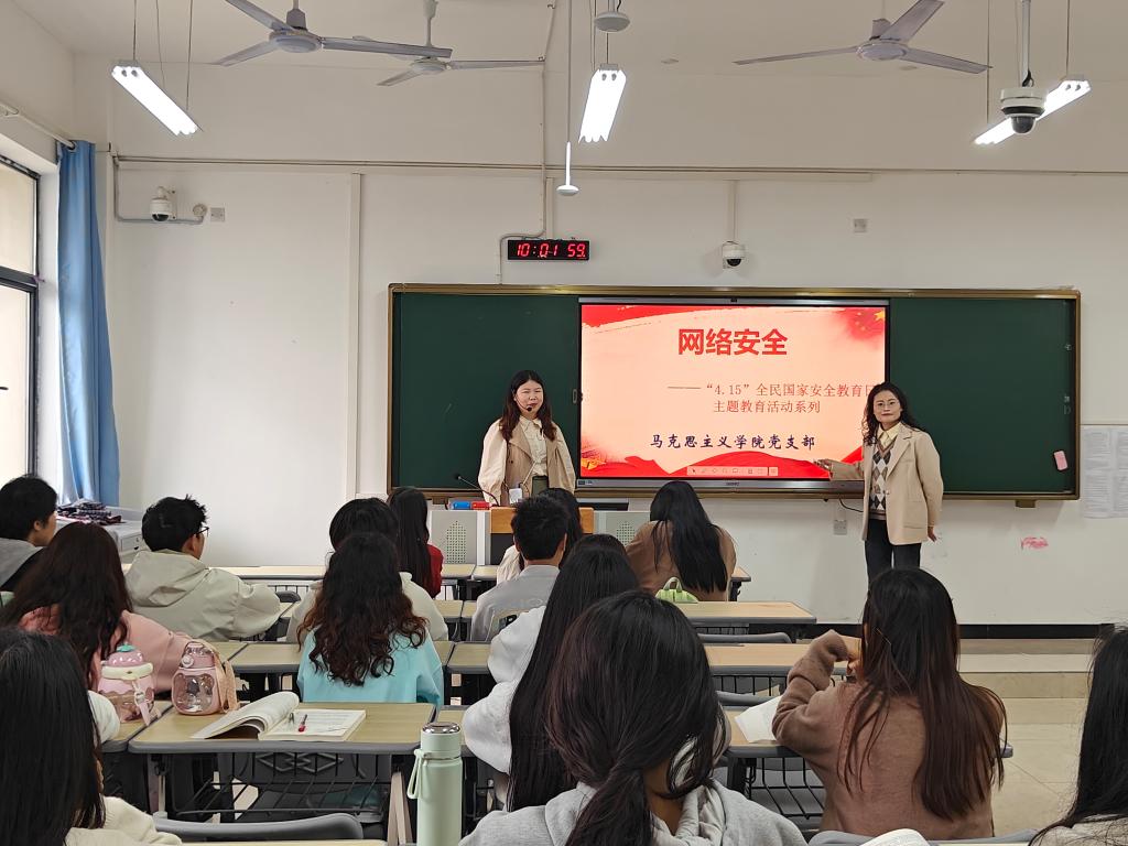 本站讯(马克思主义学院党支部 卢凯)为贯彻落实习近平总书记关于加强国家安全教育的重要指示批示精神,践行总体国家安全观,切实提高师生国家安全意识,在第九个全民国家安全教育日来临之际,马克思主义学院党支部组织党员教师走进课堂开展国家安全主题教育活动。