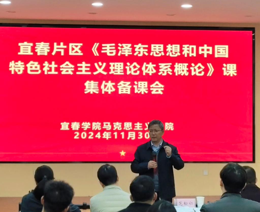为深入学习贯彻习近平总书记在全国教育大会上的重要讲话精神,进一步推进思政课问题式专题化团队教学改革,切实增强思政课的针对性和吸引力,11月30日下午, 宜春片区《毛泽东思想和中国特色社会主义理论体系概论》(以下简称毛中特概论)课问题式专题化团队教学集体备课会在开云官网马克思主义学院举行。备课会围绕毛泽东思想及其历史地位,以线下研讨和线上会议相结合的方式进行,kaiyun开云官方网站、宜春幼儿师范高等专科学校和江西工程学院等兄弟院校师生代表共100余人通过线上线下的方式共同参与此次活动,宜春学院马克思主义学院院长、江西省高校思政课分教指委副主任委员范松仁教授主持备课会。