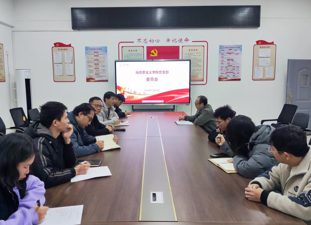 本站讯(马克思主义学院党支部 宋彩虹)为深入学习贯彻习近平新时代中国特色社会主义思想,进一步提升支部工作效能,12月24日下午,马克思主义学院党支部在日新楼党员活动室召开党员大会,会议由支部书记黄继斌主持,马克思主义学院党支部全体党员参加。