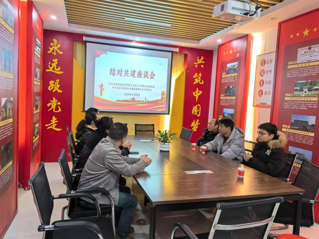 本站讯 (马克思主义学院党支部 陈牡丹)为进一步加强党建共建,促进优势互补,12月28日,马克思主义学院党支部和袁州区凤凰街道滩下社区委员会开展结对共建座谈会。马克思主义学院党支部副书记钱爱文及两位党支部支委参加会议。