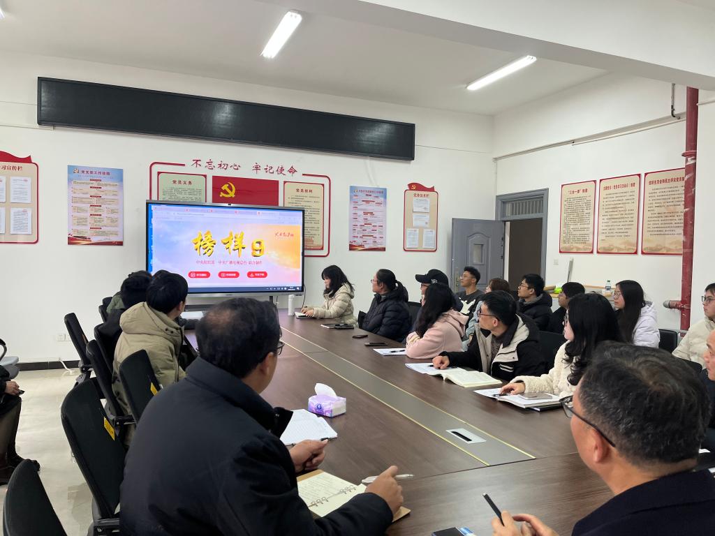 本站讯(马克思主义学院党支部 宋彩虹)为深入学习贯彻习近平新时代中国特色社会主义思想和党的二十届三中全会精神,教育引导基层党组织和广大党员干部学习榜样、争当先进,积极投身中国式现代化建设,2月25日,马克思主义学院党支部聚焦《榜样9》专题节目,在日新楼C402召开“学习榜样力量 争当时代先锋”主题党日活动,全体党员参加,活动由马克思主义学院党支部书记黄继斌主持。