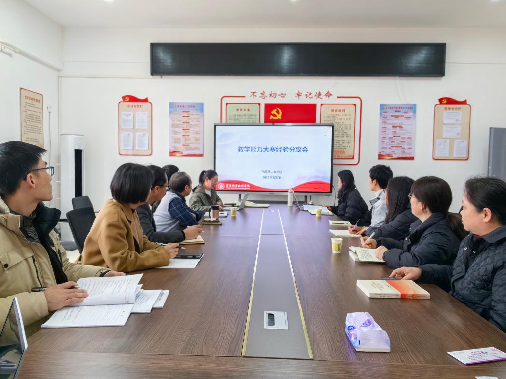 本站讯(马克思主义学院 万露露)为深化思政课教学改革,提升教师教学比赛能力,助力“大思政课”建设,3月7日下午,在日新楼C402举办“教学能力大赛经验分享会”,邀请教学能力大赛校内专家陈根金做分享,全体专兼职思政课教师参加,马克思主义学院院长钱爱文主持。