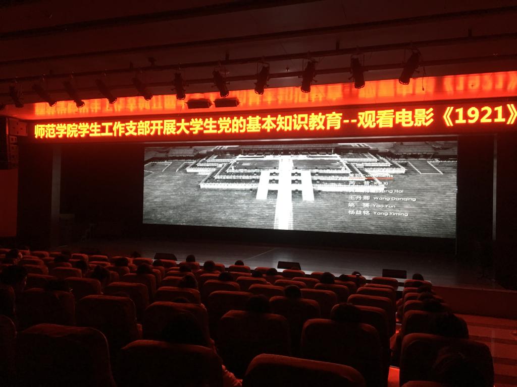本站讯(师范学院学生工作党支部 黎佳佳 学生记者 彭舒颖)为深入推进党史学习教育,加深大学生对党的基本知识的了解,2021年11月11日晚6:30,师范学院学生工作党支部组织2021级大一新生在科技综合楼学术报告厅观看红色电影《1921》。