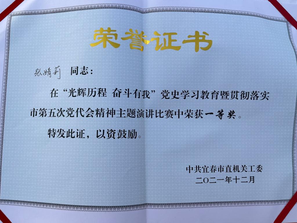 本站讯(师范学院党总支 任玉慧)12月3日,宜春市直机关工委举办的“光辉历程 奋斗有我”党史教育暨贯彻落实市五次党代会精神主题演讲比赛在宜春市科技馆音乐厅落下帷幕。师范学院党员教师张婧莉同志代表学校参赛,经过紧张激烈的角逐,从41位选手中脱颖而出,荣获一等奖!