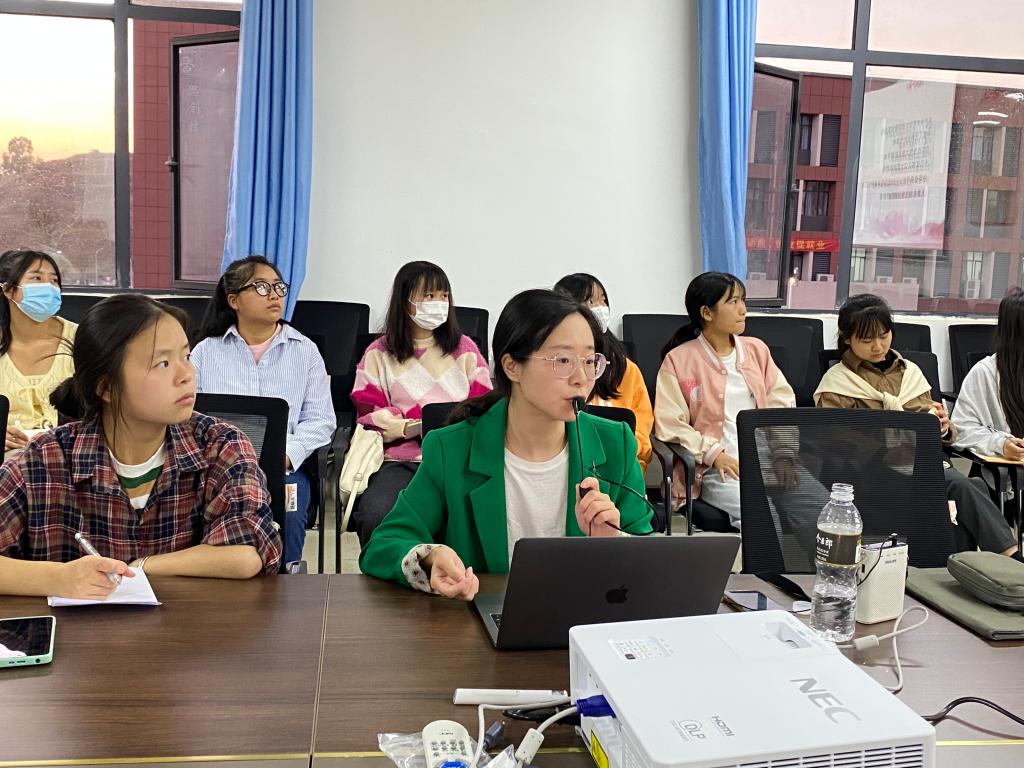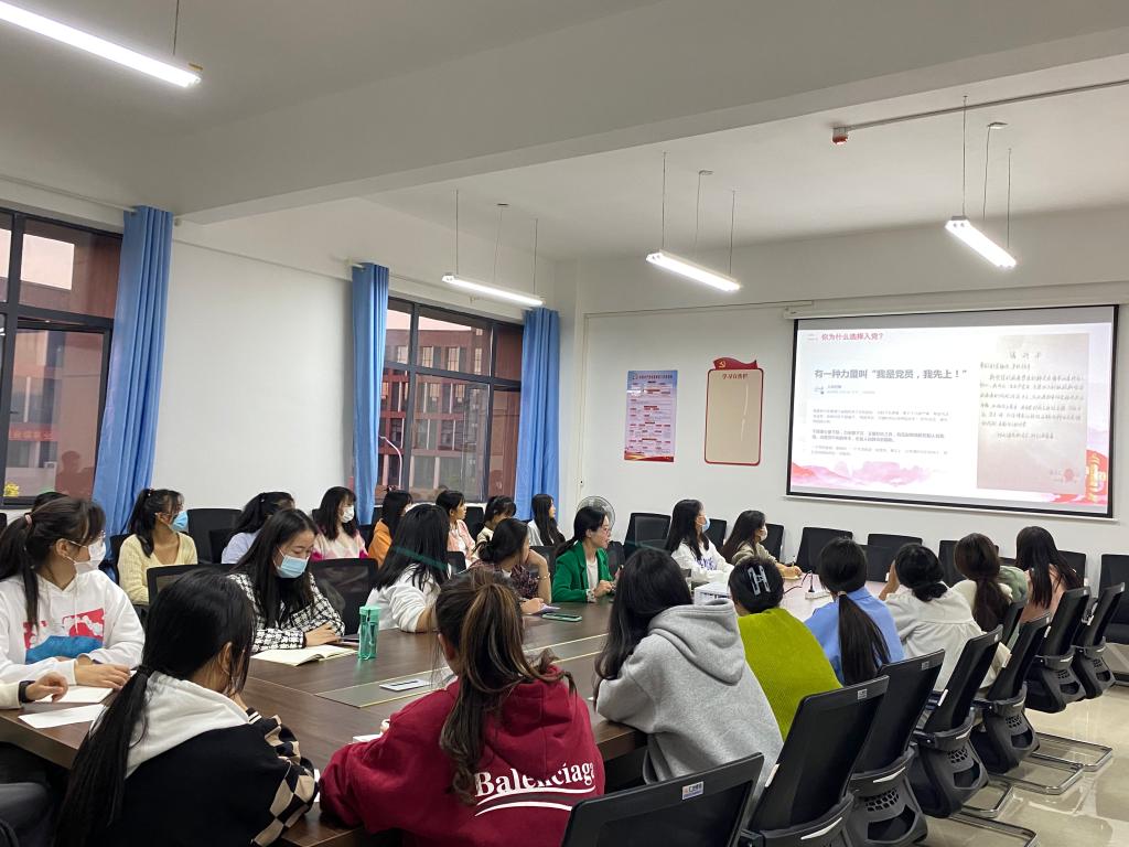 黎佳佳老师从发展党员工作的指导性文件《党章》、《中国共产党发展党员工作细则》等进行详细讲解,就青年 “为什么入党”这一问题,她强调了党对青年成长的关键作用,激励同学们“青春向党”,争先创优,积极向党组织靠拢。随后,详细介绍了入党申请书和思想汇报的书写方法、入党积极分子和发展对象的考察与接收、发展党员的具体流程等内容。