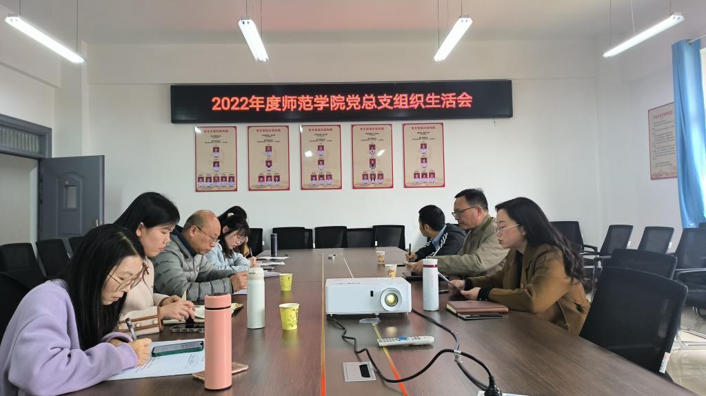 本站讯(师范学院党总支 任玉慧)为进一步贯彻落实学校“三比三争”工作要求,改进工作作风,根据校党委《关于召开2022年度基层党组织组织生活会和开展民主评议党员的通知》精神,3月21日,师范学院党总支在正心楼B204党员活动室召开2022年度组织生活会,校党委副书记黄继斌和党政办督查科科长方观洋到会指导。
