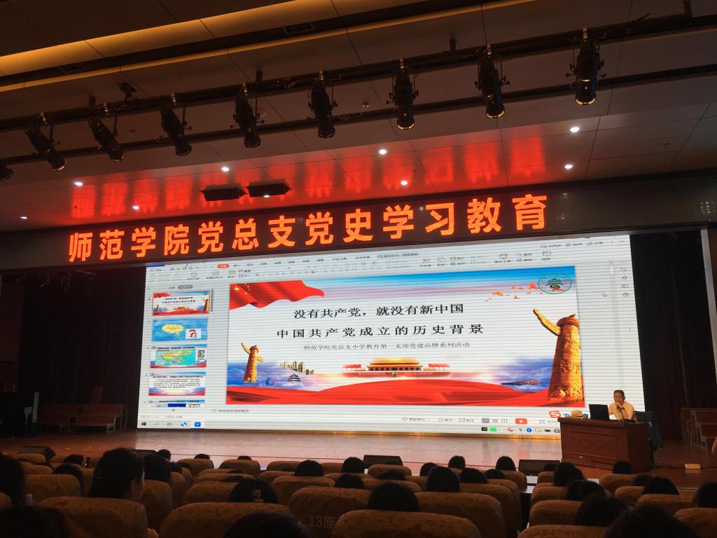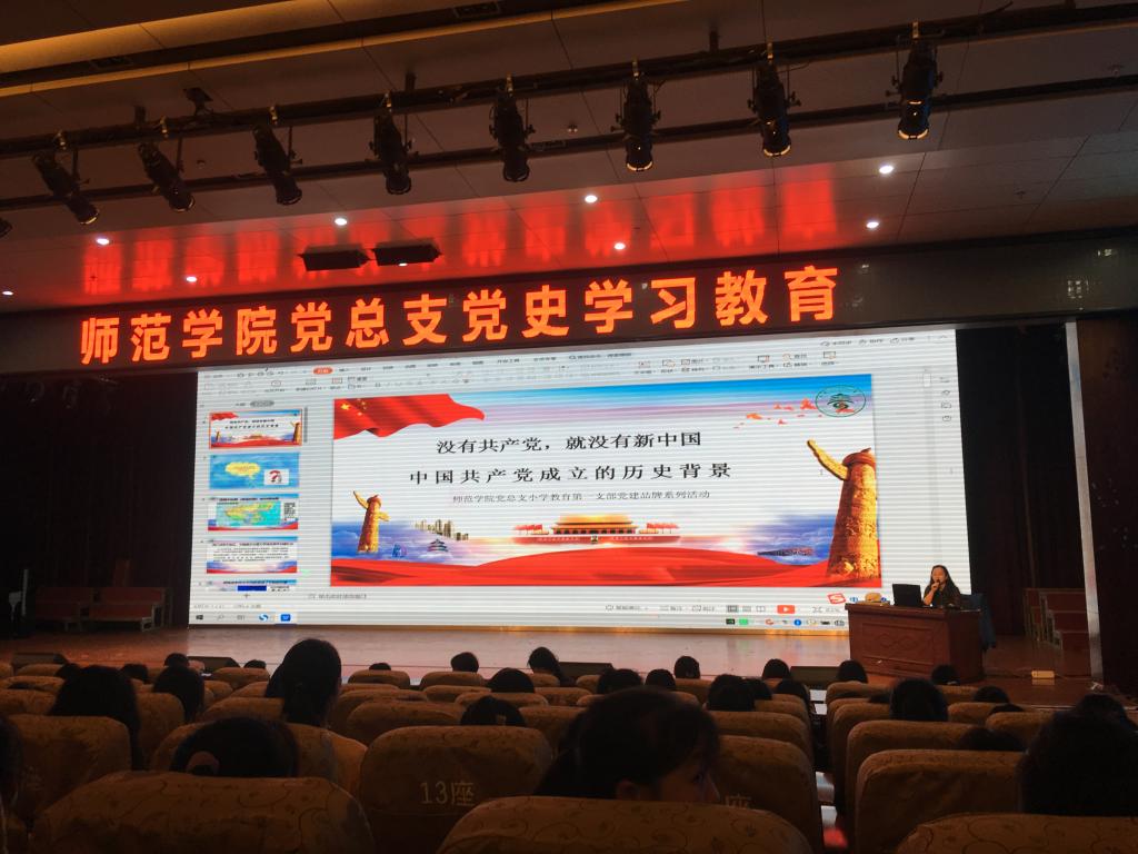 本站讯(师范学院党总支 张婧莉)2021年5月19日晚,师范学院总支在科技综合楼二楼学术报告厅开展党史学习教育,师范学院党总支党员教师及部分学生参加了学习教育。