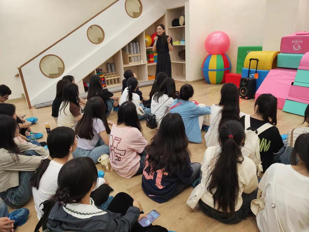 同学们来到托未来保育儿童成长中心,近距离参观保育儿童中心园区各处教学区域,直观了解托育机构主要工作内容和形式。托未来保育儿童成长中心园长彭锐由浅入深、清晰易懂地为新生讲解托育专业的发展趋势与就业前景,并针对同学们的疑问进行讲解。她结合自身的学习和工作经历,鼓励同学们尽快适应新的环境,掌握正确的学习方法,明确前进的方向,对同学们今后的学习提出了很多宝贵建议。
