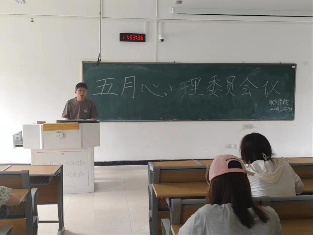 本站讯(师范学院 吴滨欣)为进一步推进心理健康月活动,5月29日中午,师范学院在正心楼D209教室召开五月份全院心理委员会议。本次会议由辅导员吴滨欣主持,全院心理委员共计80余人参加会议。