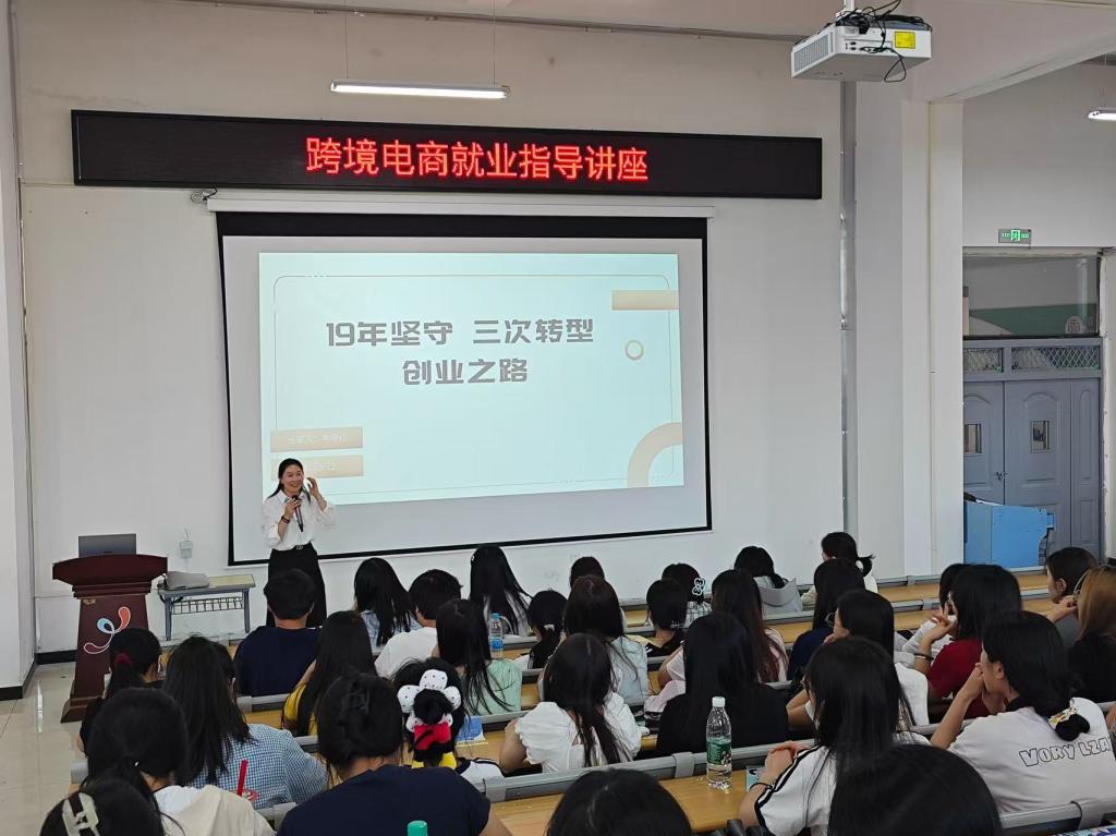 辛坤红分享了跨境电商行业的发展现状和就业前景。她结合自身经历,详细讲解从校园到职场的转型过程,鼓励学弟学妹们在校期间多参与实践,特别强调英语专业技能在实际工作中的重要性,并从创业的角度出发,为同学们剖析了跨境电商创业的机遇与挑战,给出了实用的创业建议;互动环节,同学们踊跃提问,就专业学习、实习就业选择及职业规划等问题进行深入交流,现场气氛热烈。