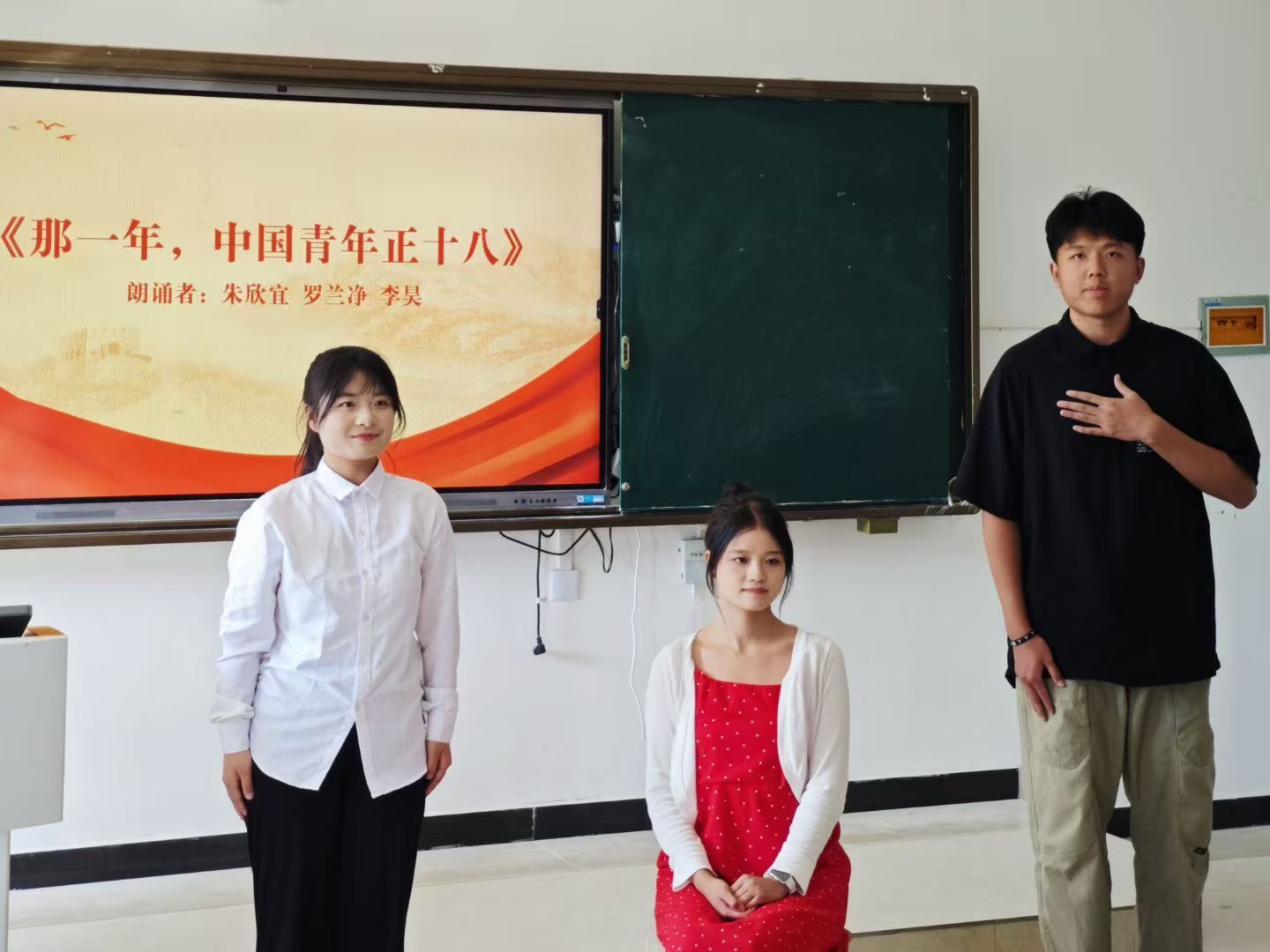 本次比赛吸引了众多学生参与,参赛作品涵盖近现代散文、红色诗歌、革命家书等多种题材。吴志岩同学以字正腔圆、声情并茂的语言艺术深情演绎《纪念刘和珍君》,让这一脍炙人口的经典名篇在舞台上焕发出新的生命力;邓文燕、罗志远同学带来的《与妻书》情感细腻真挚,生动诠释了“情之深”与“志之坚”的双重张力,引发听众强烈共鸣;朱欣怡、罗兰净和李浩同学的作品《那一年,中国青年正十八》,运用时空交错的沉浸式表演,以其极具张力的艺术表达为师生带来一场视听享受。评委老师从内容选材、情景演绎、声音表现力等维度出发,对参赛选手的表现予以肯定,并对每位选手进行细致点评。