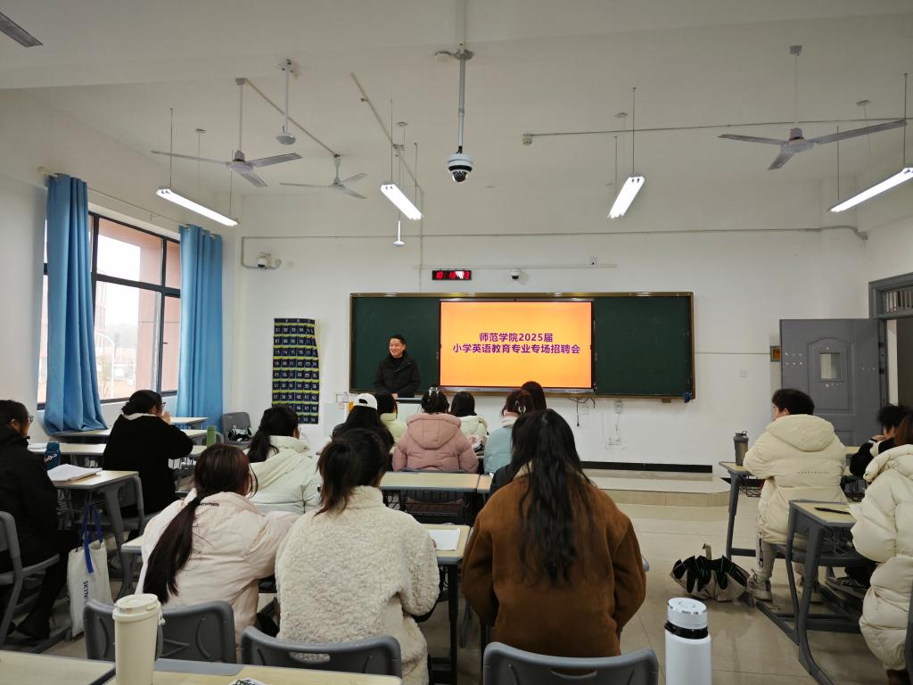 本站讯(师范学院 暨琨)3月5日上午,师范学院在正心楼B218教室召开小学英语教育专业专场招聘会,会议邀请到上高县法斯特艺术培训中心有限公司的负责人及主管教师进行宣讲。