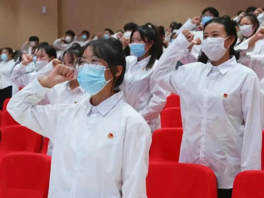 随后,开云官网2022年新发展团员入团仪式在雄壮的国歌声中拉开序幕,入团仪式由校团委组宣科科长梅应轩主持。刘叶建及各二级学院团总支书记为新团员颁发团章、团员证并为其佩戴团徽。在老团员代表师范学院叶炳勇的带领下,新团员面向团旗进行了庄严的入团宣誓仪式,青春誓言,高昂雄浑。艺术与设计学院张云作为入团介绍人代表,宣读了《团章》中有关权利与义务的条款。护理学院欧阳云、师范学院叶炳勇分别作为新、老团员代表进行发言,激励新团员充分发挥团员的先进性,积极行使权利、履行义务、承担责任,在同学中起到模范带头作用。校团委书记施旸对新团员们致以真诚的祝贺和美好的祝愿,并表示团组织的大门向一切先进青年敞开,要求同学们努力提高自身能力素质,争做担当民族复兴大任的时代新人,同时鼓励还未入团的同学从实际出发,从自身出发,努力提高自身综合素质,积极向团组织靠拢。入团仪式结束后,校团委素质拓展科科长彭良婧宣读此次业余团校培训安排、纪律和学员考核办法,开班典礼顺利落幕。