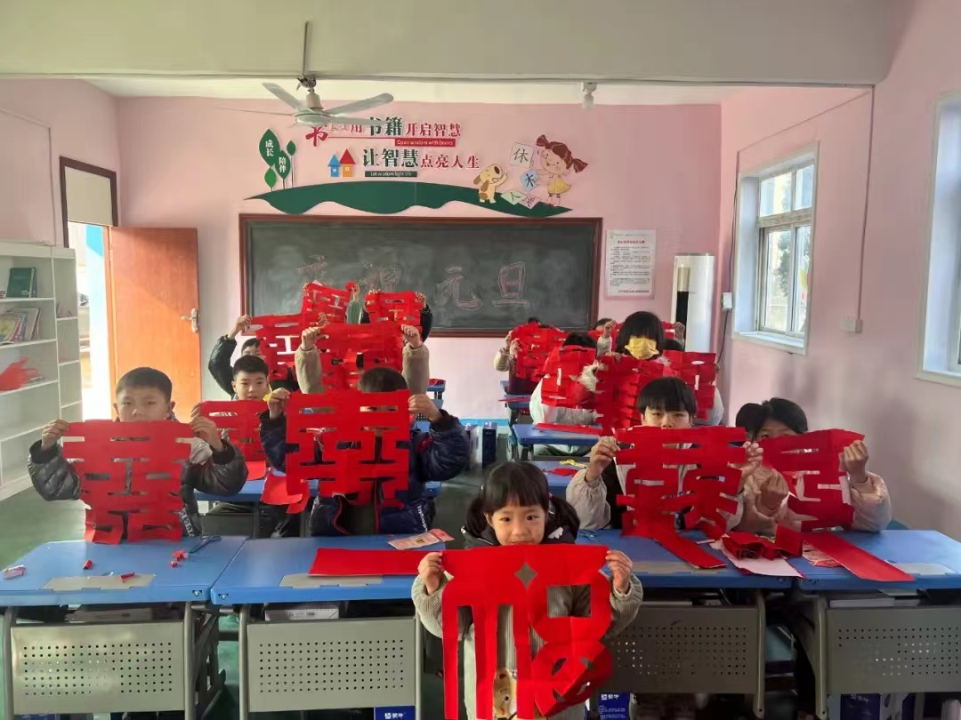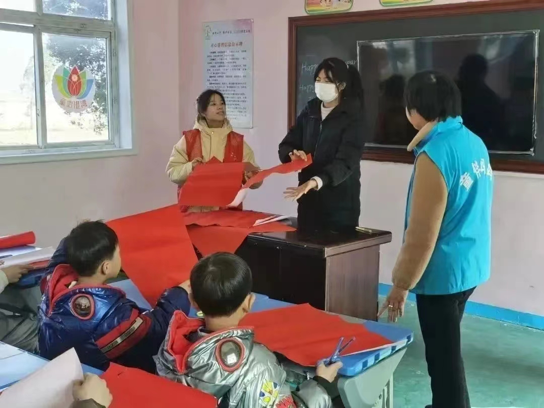 活动伊始,博冠餐饮有限公司、太平村村委、校团委老师们以及童伴妈妈贴心地赠予每位孩子牛奶、文具和小礼物,并与孩子们留影纪念,记录下这温馨美好的一刻!随后,随行的青年志愿者们为孩子们带来了其乐无穷的音乐小课堂和手工剪纸窗花。志愿者以新年为主题,结合自身专业知识,以游戏互动的方式教孩子们唱英文儿歌《Happy New Year》。在剪纸窗花过程中,在志愿者耐心的指导下,孩子们兴致勃勃、乐在其中,现场一片欢声笑语,一幅其乐融融的温馨画面。童伴妈妈也参与其中并鼓励孩子们不怕失败勇于尝试。最后,每个孩子手上都有了属于自己的作品。