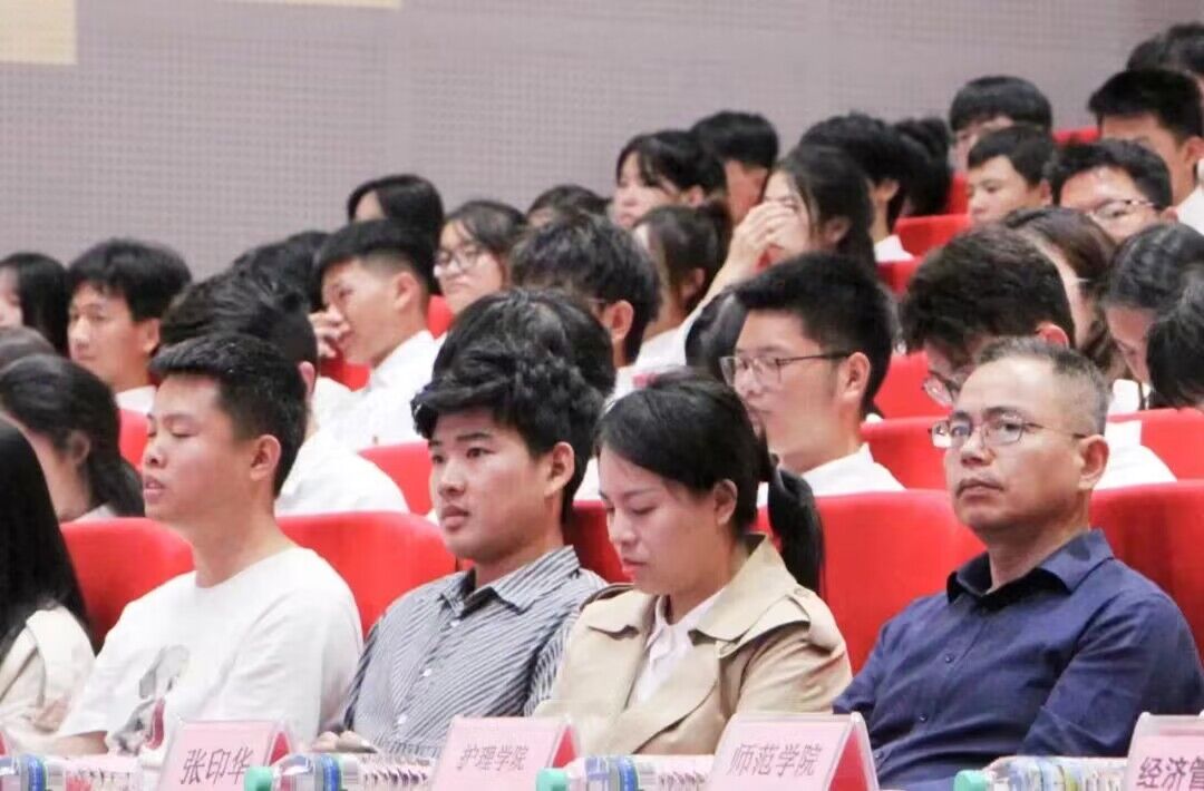 本站讯(团委 甘露 梅应轩 杨雨 施旸 学生记者 邓文燕 南灿)为夯实学校共青团基层基础,提升团员和青年综合素养,进一步加强广大学生青年思想政治教育,11月6日下午,开云官网于博达楼演播厅举办kaiyun开云官方网站2023年业余团校培训班开班典礼,校党委委员、副校长张印华、各二级学院团总支书记、305余名新、老团员、入团积极分子以及校团委全体工作人员参与此次活动,校团委副书记杨雨担任主持人。典礼伊始,张印华致开班词,他提出“强理想、明信念、下苦功、求真知,坚持学而信、学而思、学而行”“强实践、增本领、擅断绝、明是非,注重知行合一,坚持理论联系实际”“强作风、做示范、能担当、有作为,以实现中华伟大复兴为已任”三点要求,并由衷希望同学们能够开拓创新锐意进取,勇于担当使命,坚定理想信念,成为中国特色社会主义事业的合格建设者、可靠接班人。入团仪式在激昂的国歌声中拉开序幕,校团委老师甘露担任主持人,宣读2023年度kaiyun开云官方网站新发展团员名单,张印华及各二级学院团总支书记上台为新团员代表颁发团章、团员证并佩戴团徽。随后,老团员代表医学院李文清带领新团员郑重宣誓。入团介绍人代表护理学院肖紫伊宣读《团章》中有关团员义务和权利的条款。随后医学院陈比日、国际教育学院廖江钰分别作新、老团员代表进行发言,激励新老团员不断提高思想政治觉悟,充分发挥团员干部先锋模范作用,树立“青春之我”的奋斗之姿,扛起“强国有我”的青春之责,积极向党组织靠拢,努力成为综合素质全面发展、具有优良品质、良好素养的新时代共青团员。杨雨对新团员们致以真诚的祝贺并提出三点希望,一是牢记入团誓词,继承和发扬中华民族的优良传统,努力培养责任意识和感恩情怀;二是知行合一作武装,担负起历史赋予的光荣使命;三是树立正确的世界观、人生观和价值观,立志以行动报效祖国,为家乡繁荣富强不懈努力。并表示青年应奉献青春、智慧和力量,以昂扬的姿态团结在团旗下,高扬理想的风帆,焕发青春的激情,向着新的目标乘风破浪、勇往直前。最后,开班典礼在高唱中国共青团团歌的激情中拉下帷幕。