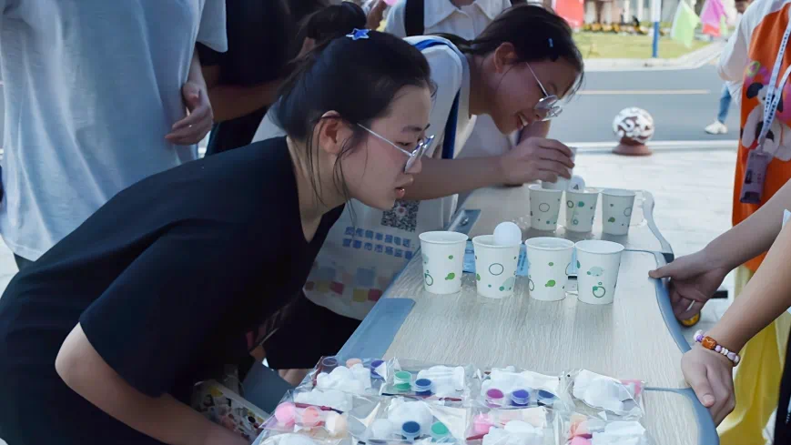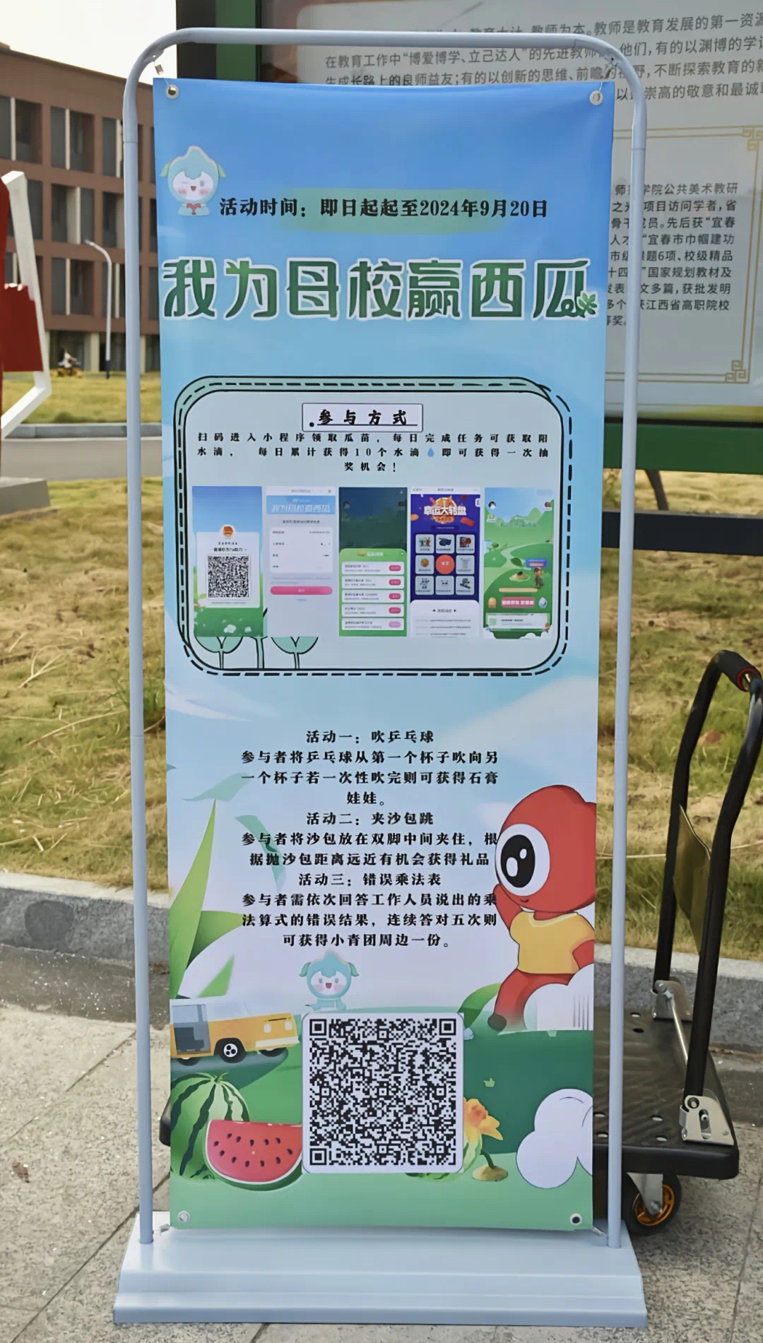 本站讯(团委 曹招 刘嘉妮 王玮 学生记者 邹欣宇 鲁思甜)为积极响应国家乡村振兴战略,弘扬助农精神,激发青年的创造力和实践能力,9月9日下午,开云官网校团委小青团融媒体中心于东区食堂门口举行“我为母校赢西瓜”活动,活动面向全体师生。本次活动由线下活动“吹乒乓球”“夹沙包跳”“错误乘法表”和线上扫码活动四部分组成。趣味与挑战并存的游戏互动及有奖问答,吸引着同学们纷纷驻足参与,现场气氛十分活跃。富有挑战性的“吹乒乓球”活动考验了同学们的注意力,同学们在几次尝试之后终于将乒乓球送到终点;在充满趣味性的“夹沙包跳”活动前,同学们展现出跃跃欲试的姿态。飞出去的沙包在空中划出一道美丽的弧线,那是青春恣意的模样;“错误乘法表”活动中,反应力快的同学轻松拿下,精美的小青团周边更吸引了不少人驻足停留。