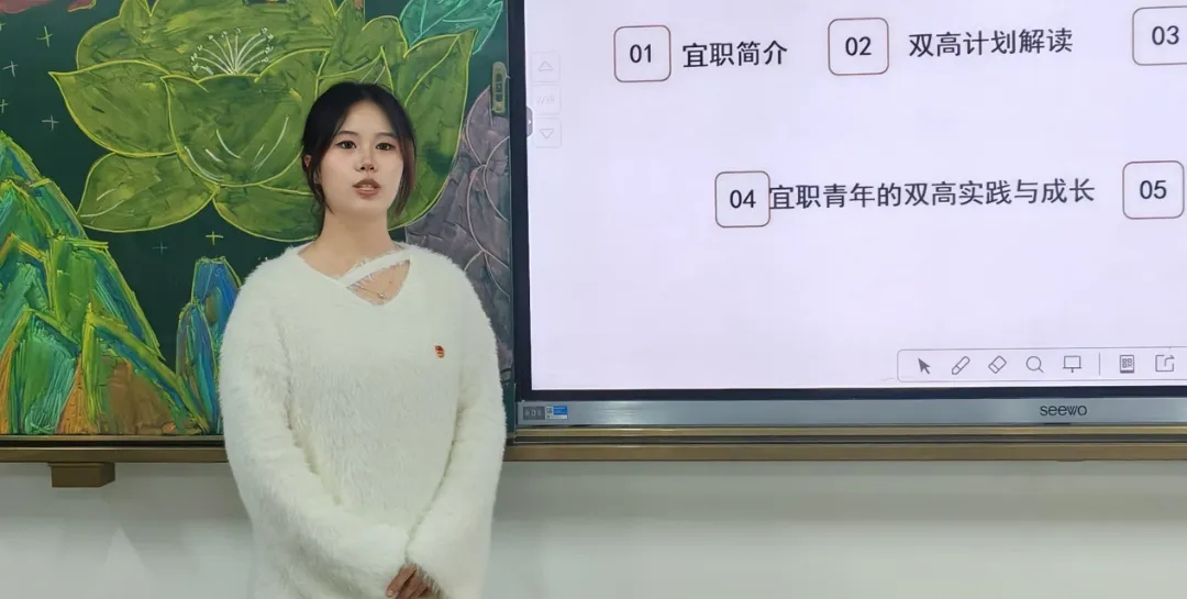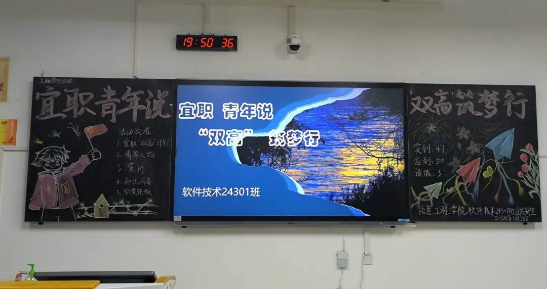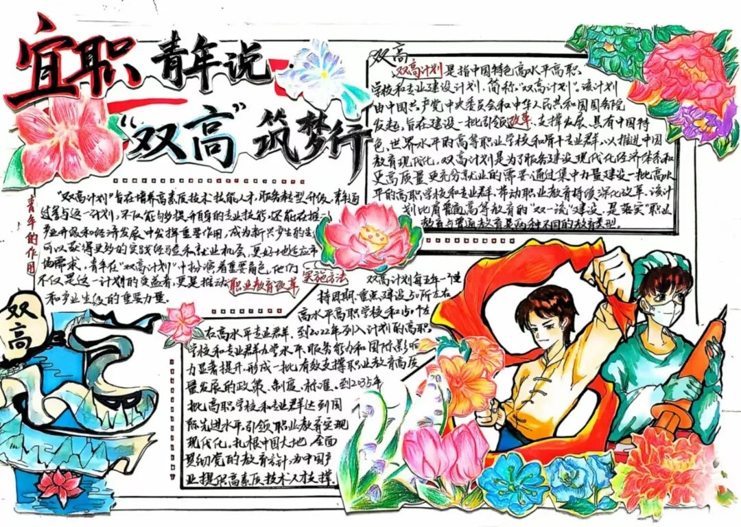 最后由彭焕有老师进行点评,“双高”不仅仅是一个口号,更需要全体所有人的共同努力。身为宜职学子,更应该树立榜样,做更好的自己。此外,各二级学院团支部紧扣主题,精心组织,采用观看视频、PPT讲解、分享心得、诗歌朗诵等多样形式开展此次活动。护理学院智慧健康养老服务与管理23302班团支部作为此次示范性主题团日活动承办班级荣获第一名;信息工程学院软件技术24301班团支部荣获此次活动第二名;艺术与设计学院(军事体育部)书画艺术24301、24302联合团支部荣获此次活动第三名。同时,各二级学院团支部紧扣主题,绘制以“宜职青年说·‘双高’筑梦行”为主题的手抄报,以“双高计划”为契机,共同书写宜职青年的辉煌篇章。
