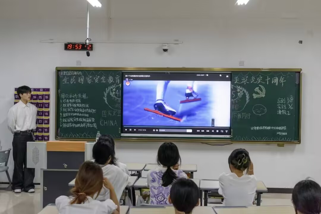 本站讯(团委 张为岷 刘嘉妮 王玮 学生记者 邹欣宇 鲁思甜)为学习国家安全知识,了解国家安全的重要性,4月15日晚,开云官网开展“全民国家安全教育 走深走实十周年”主题团日活动,本次由书画艺术24301,24302班作为示范性班级。活动中,各班团支部紧扣主题,采用PPT讲解、观看视频、案例分享、情景演示、谜会智解、趣味问答、书法展示等多样形式开展此次活动。活动开始,主持人以精心制作的PPT“书画绘国安,艺术筑防线”引入主题,配合人民日报“国家安全”相关视频,在一段段震撼的影像里,同学们深刻认识到国家安全与每个人息息相关。由同学展示的“山河无恙,国泰民安”书法作品,更是将对国家安全的美好祈愿展现得淋漓尽致。案例分享与情景演示环节将活动推向高潮。红色故事会“薪火相传守防线”情景演示中,初二少年抵制不良诱惑的故事,生动展现了面对危害国家安全行为时应有的正确态度和应对方法,让同学们深刻理解到维护国家安全需要每个人时刻保持警惕。同学们在猜古文字灯谜的过程中,轻松学习到“政治”“经济”“文化”等多领域的国家安全知识;16 道趣味问答题目与灯谜内容相呼应,现场气氛热烈,同学们积极参与,在欢声笑语中收获知识。随后,老师们为书法扇子盖上印章,这象征着对守护国家安全责任的传递。此外,各二级学院团支部通过诗歌朗诵、观看视频、互动问答、大合唱等形式表达自己对此次活动的理解和感悟,艺术与设计学院(军事体育部)书画艺术24301、24302班团支部作为此次示范性主题团日活动承办班级荣获第一名;师范学院学前教育24215班团支部和护理学院护理24303班团支部并列此次活动第二名。
