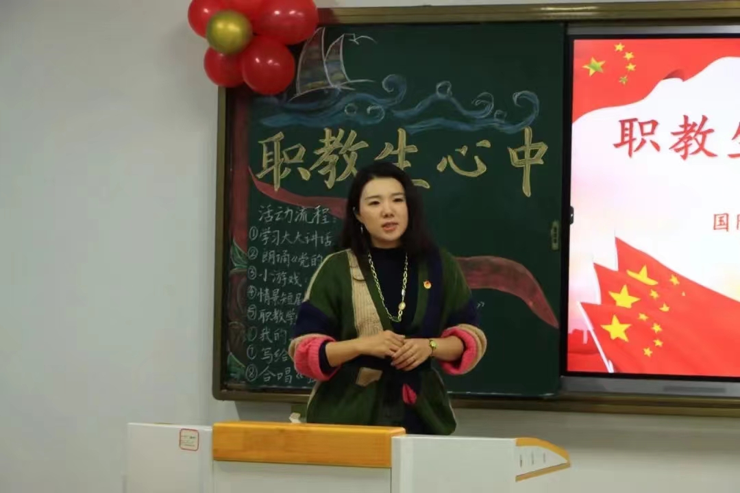 活动伊始,同学们通过观看学习强国平台视频相互交流心得体会,并生动演绎《打破职校偏见,携手走向未来》情景剧片段,随后进行的《我的二十岁遇见党的二十大》演讲与《写给2035年的我》的写信环节立意新颖、主题鲜明,向广大学子树立正确的职业教育价值认知,引导同学们将思想与行动相结合,充分彰显出热爱党,心向党的浓厚情怀。最后,整场活动在“强国一代有我在,我要秀出我厉害……”的歌声中落下帷幕,同学们也满怀感激地将鲜花赠予老师,体现出青年学子们立志将党的二十大精神融入立德树人,把小我融入大我的坚定理想信念。活动结束后,校团委书记施旸从前期准备和活动程序上肯定了活动开展效果,活动环节紧凑有序,同时针对活动细节指出了不足及改进建议。她指出开云官网青年学子们应衷心拥护中国共产党的领导,自觉把青春梦融入中国梦,立志为打拼出一个更加美好的中国贡献青春的智慧和汗水。此外,各班级团支部也通过朗诵、观看视频、大合唱、PPT等形式开展。艺术与设计学院22舞蹈教育团支部采用手势舞的形式,生动形象地表现出她们对祖国未来的繁荣富强充满着无限向往和信心,荣获此次活动第三名。