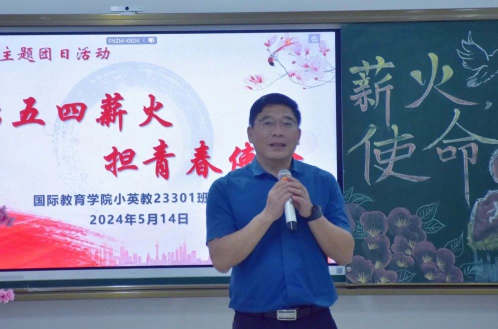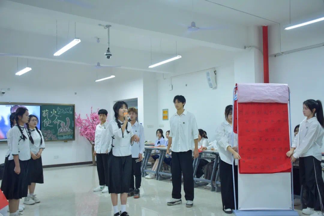 本站讯(团委 陈卓凡 甘露 杨雨 学生记者 邓文燕 南灿)五四风雷起,薪火传百代。为进一步感悟中国共产党领导青年运动的光辉历程,以实际行动展现新时代青年学子的昂扬面貌,充分发挥党建带团建的思想引领作用,5月14日晚,校团委在全校范围内组织开展“传五四薪火,担青春使命”主题团日活动。本次示范性主题团日活动由国际教育学院小学英语教育23301班团支部承担,校党委书记任军亲临现场参与活动。党政办主任高华兵、继续教育学院党支部书记周昊、国际教育学院部分领导老师、校团委工作人员、各二级学院团总支书记也到场观摩,本次活动也在“宜春职院青年”视频号上同步直播,供全校师生观摩学习。活动在视频《中国青年是什么样的》中开始,青年代表们用他们多彩的青春,引导广大青年用实际行动书写青春奋斗篇章;随后,同学们通过角色扮演,还原了五四运动革命先辈们的激情演讲,进行了一次“跨越时空”的呐喊。紧接着,妙趣横生、富有创意的“emoji猜历史事件”游戏,让同学们在游戏体验中感悟历史,深刻体会先辈们的崇高民族精神和伟大爱国情怀;结合国教学子专业特色的英文配音秀,用英语向大家展示了中国传统文化刺绣的魅力。少数民族同学则用彝族达体舞表达了民族一家亲,共筑中国梦的美好和谐情怀。在五四精神的感召下,国教2023届优秀毕业生谭康馨重返校园,向学弟学妹们分享了从师范生到正式教师的宝贵经验,给予正处于青春年华的在校同学以坚定的支持和鼓励,她的话语点燃了学弟学妹们向榜样看齐的热情,让五四精神的光辉在心中闪耀,熠熠生辉。最后,歌曲大合唱《如愿》,唱响了新时代青年的理想信念和赤子之心,也为本次活动画上了圆满的句号。任书记对此次活动给出了高度评价,他指出本次活动紧扣主题并能围绕专业知识展开创作,效果显著。同时呼吁广大青年要主动从党史学习中激发信仰、获得启发、汲取力量,不断坚定“四个自信”,不断增强做中国人的志气、骨气、底气,树立为祖国为人民永久奋斗、赤诚奉献的坚定理想。此外,各二级学院团支部也通过诗歌朗诵、情景剧演绎、案例分享、大合唱等形式表达自己对本次活动的理解和感悟。如经济管理学院和机电与新能源汽车学院通过观看五四青年节视频与PPT讲解开展本次活动,引导同学们树立铭记历史、学思悟践的思想意识,深刻把握了革命先烈们英勇无畏精神的丰厚内涵和时代价值。艺术与设计学院通过开展五四青年节知识竞赛,以赛促学,充分调动了同学们的积极性和使命感。护理学院以唱歌的形式,用青年之声来歌颂风华正茂的青春,来颂扬繁荣富强的新中国,激励同学们在新时代的征程中砥砺前行。师范学院与国际教育学院,采取了多元化的科普方式,通过答题、小组讨论等丰富多彩的活动形式开展本次活动,全面而深入地引导同学们继承发扬五四精神,树立挺膺担当的时代精神。医学院和信息工程学院以朗诵、个人演讲等形式开展活动,内容富有创意,贴近时代、深入人心,通过情感真挚、内容丰富的演绎,深刻诠释了五四精神的核心价值。国际教育学院小学英语教育23301班团支部作为本次示范性主题团日活动承办班级荣获第一名;经济管理学院电商23302班团支部荣获本次活动第二名;护理学院护理23302班团支部荣获本次活动第三名。