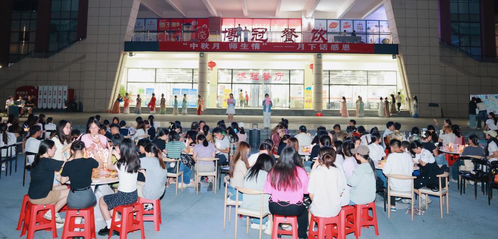 本站讯 (“心梦”辅导员工作室 刘清珍)为弘扬中华民族优秀传统文化,加强对学生的感恩教育,9月17日中秋节当晚,校学工处联合“心梦”辅导员工作室和“爱生如子”班主任工作室在博冠餐厅前广场开展“中秋月、师生情——月下话感恩”中秋感恩主题活动。副校长张彩凤全程参与并与师生们互动。