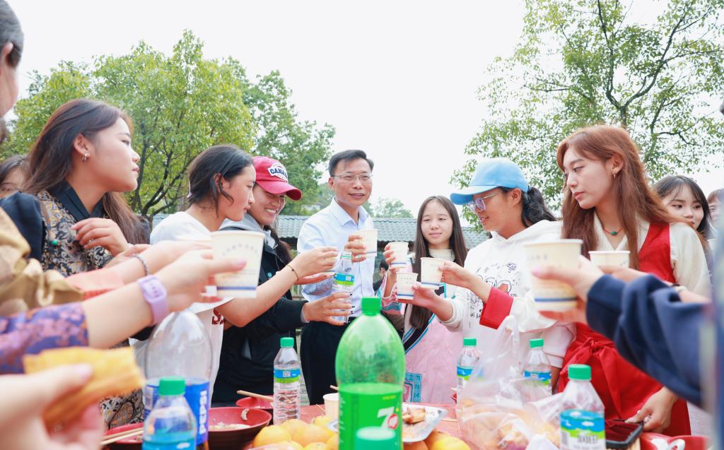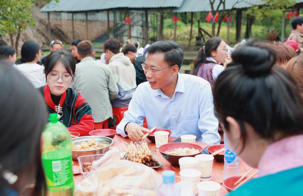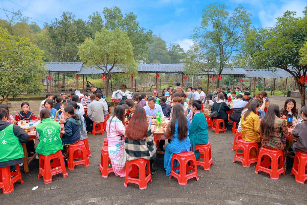 活动还安排了丰富的互动环节。师生们一同参与彝族传统美食“坨坨肉”的烹饪,大家分工合作,炊烟袅袅,锅里的美食散发着诱人的香气。同学们端起酒杯,唱着敬酒歌,热情欢迎学校老师们,一曲《过年好》表达了大家对新年的美好祝愿。这种亲密无间的互动,不仅加深了师生之间的情感联系,更让民族团结的情谊在欢声笑语中得到升华。