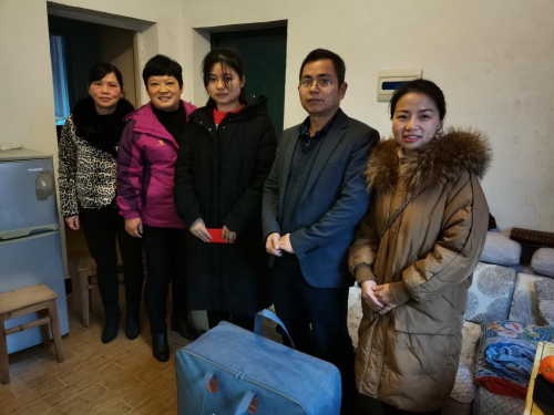 本站讯(学工处 万羚)岁末天寒,情暖人心。为贯彻落实不忘初心,牢记使命主题教育精神,弘扬开云官网爱生如子的优良传统,1月15日下午,副校长张印华、学工处处长谢海英、学生资助管理中心主任吴玲敏、心理健康教育中心主任李兵兵及班主任前往师范学院2019级小学教育专业徐同学与2019级学前教育专业刘同学家中进行走访慰问,为她们送去了冬日的温暖和新春的祝福。