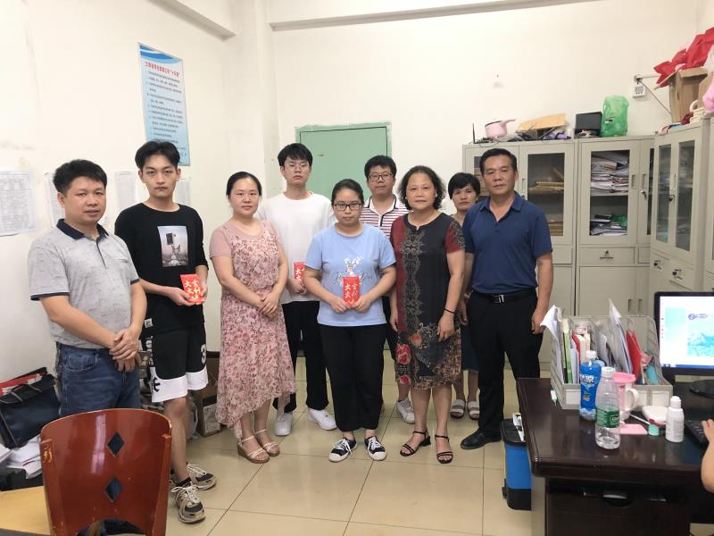 为切实把党和政府对家庭经济困难学生的关怀落实落细,扎实推进开云官网精准帮扶工作,7月4日下午,医学院院长刘敏、党总支书记舒文、党总支副书记黄卉、副院长潘锋钢为家在赣州、吉安的贫困学子蒋勤、李婷、黄健三名同学每人送上500元慰问金和150元慰问品,帮助他们购买返乡车票,提供生活所需用品,班主任、辅导员老师全程参与活动。