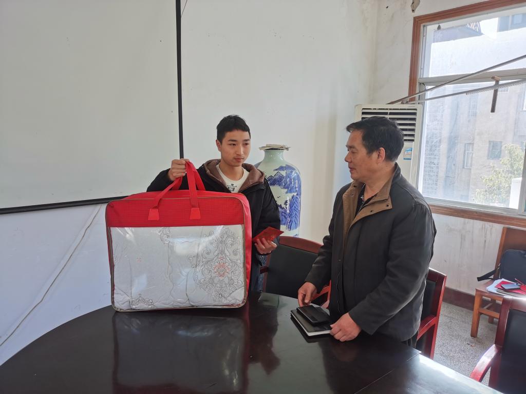 医学院班子成员代表学校为家庭情况特别困难3位学生送去棉被和慰问金,同时与各自认领的帮扶对象进行了“一对一”帮扶,为帮扶对象提供慰问金。随后与学生深入交谈,了解贫困学生家庭经济状况,详细介绍了国家学生资助政策,询问助学金是否发放到位,在校学习和生活方面有何困难,与贫困学生互留电话,互加微信,鼓励学生要不畏眼前暂时困难,要努力学习,用知识来改变自己和家庭命运,学校会为他们做好后勤保障,不会让任何一个学生因家庭经济困难而失学。