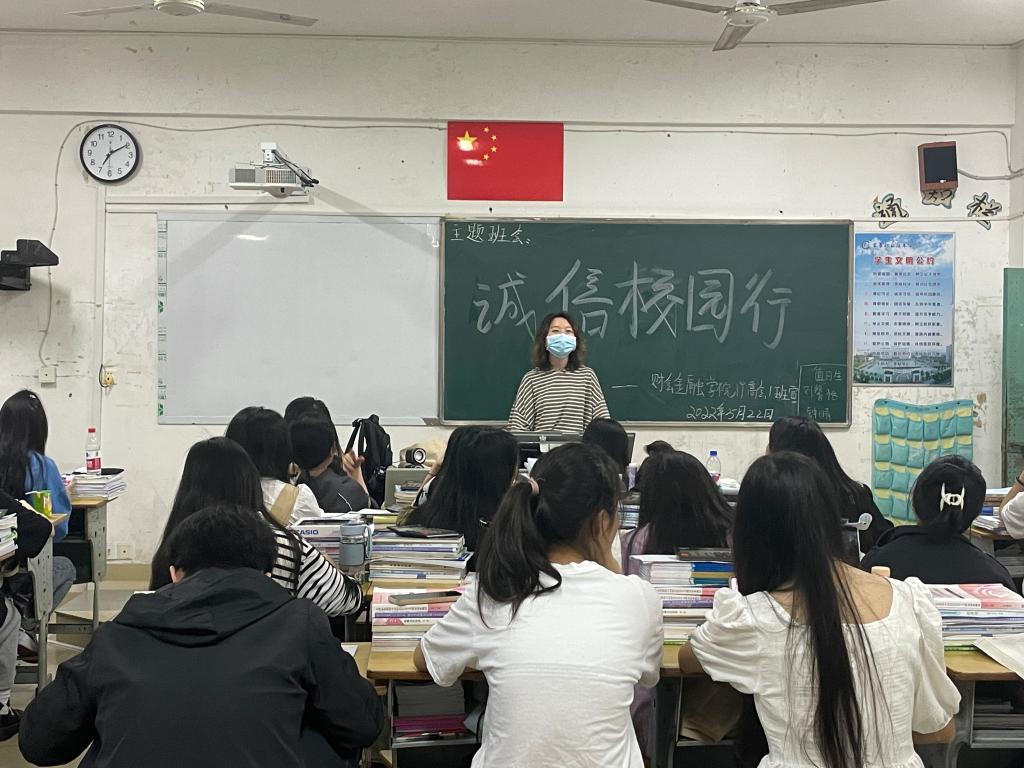 本站讯(财会金融学院 潘骁哲 熊玉婷)为引导大学生自觉培育、深入践行社会主义核心价值观,树立诚信理念,强化诚信意识,培养诚信品质,建设“人人知诚信、处处讲诚信”的健康和谐校园。5月22日晚上八点,财会金融学院于各班级开展“诚信教育”主题教育班会。