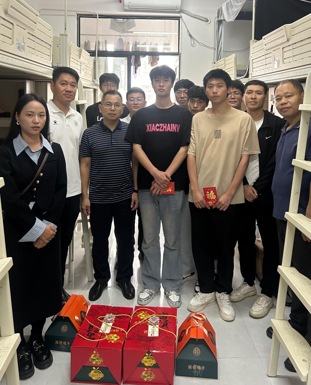 同日,机电与新能源汽车学院开展端午节走访慰问学生活动。党委委员、副校长张印华,院党总支书记赵琰,党总支副书记周勤、学工科长刘勇和班主任一行到学生寝室走访慰问学生,为他们送上慰问品、慰问金及节日祝福;张印华详细询问2名学生的生活、学习情况,了解他们的需求和困难,鼓励学生要树立信心,克服困难,学好知识,强好本领,用自己的努力创造美好明天。学生们对学校的关心和慰问表示衷心的感谢,也表示会珍惜在校时光,努力学习,不辜负学校和家长的期望。