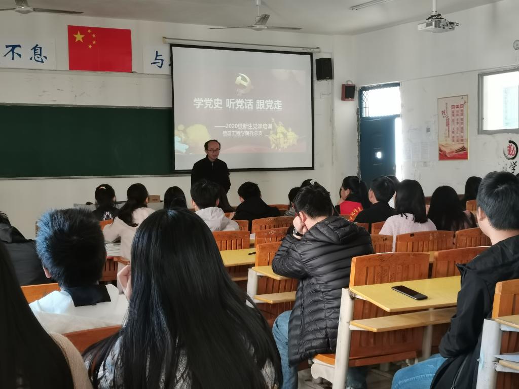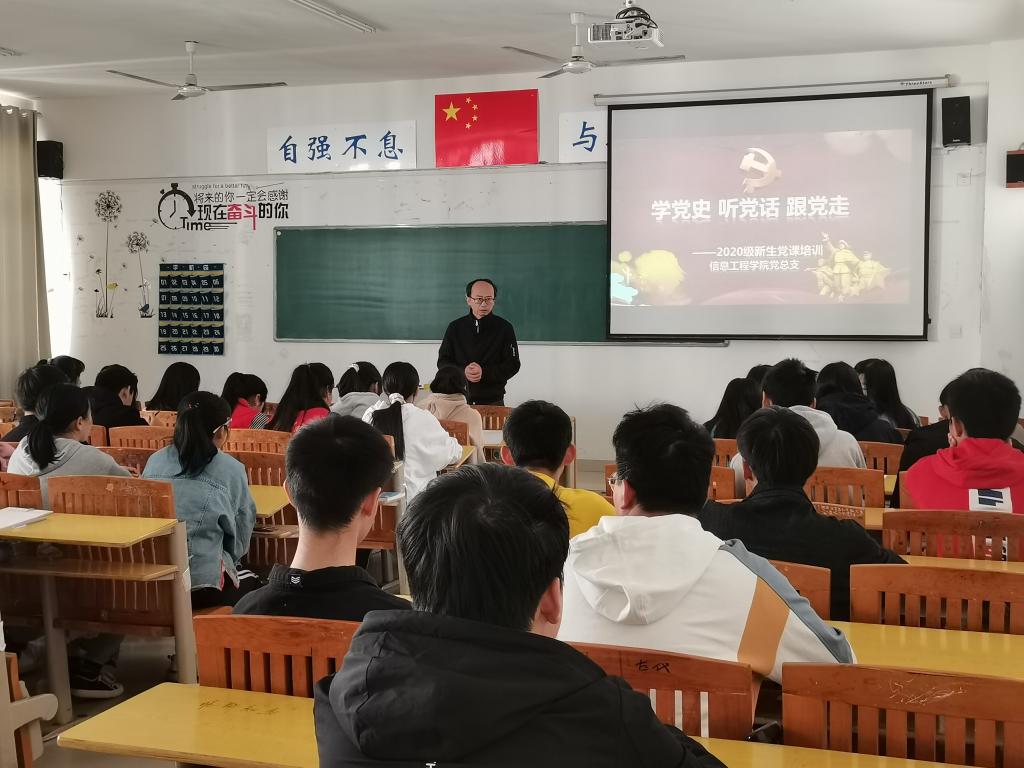 为进一步引导广大新生坚定理想信念,积极引导青年学生向党组织靠拢, 1112日上午,信息工程学院在三教楼602教室集中为我院新生开展主题为“学党史 听党话 跟党走”党课活动,本次党课由我院党总支副书记简靖韡主讲。