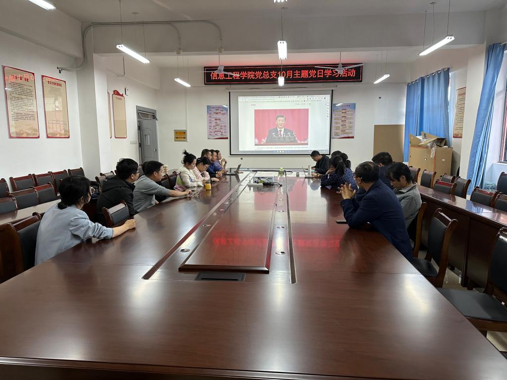 本站讯(信息工程学院 易文意)为深入学习贯彻党的二十大精神,10月18日,信息工程学院党总支组织全体党员开展主题党日活动,集中学习党的二十大报告精神。