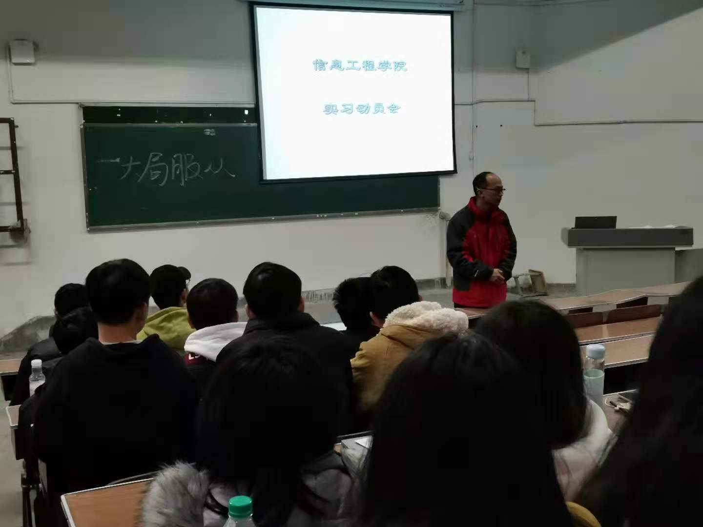 为了加强实习管理,让2018级实习生对即将开始的实习进行了解,根据实习工作的安排,我院于1124日在信息楼三楼多媒体教室召开2018级实习动员会,学院党总支副书记简靖韡及实习班班主任及18120余位实习生参加,会议由饶芹老师主持。