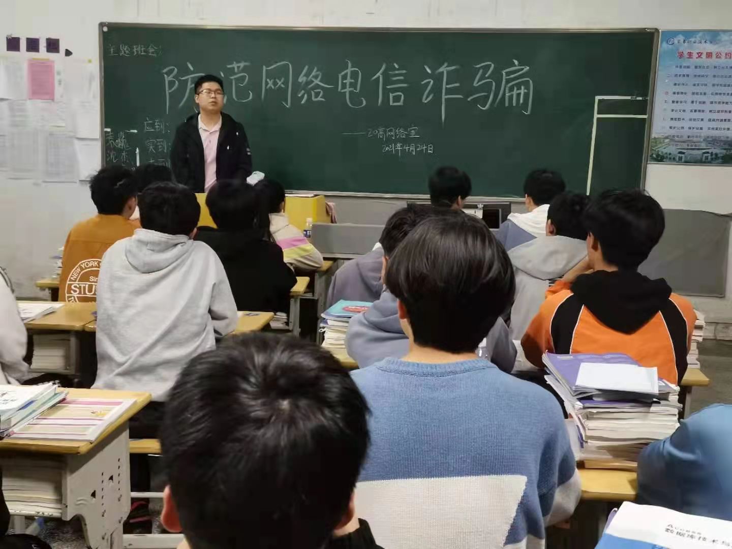 为了进一步增强学生的网络安全防范意识,提升对网络电信诈骗的应对能力,4月24日晚,我院组织各班开展“防范网络电信诈骗”主题班会。