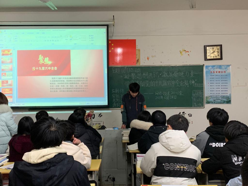 活动中,各班团支书运用多媒体、问答等形式开展我院青年学子了解学习党的十九届六中全会精神主要内容,赓续红色血脉,勇担时代使命,倡导学子们一起用青春接过时代的接力棒。