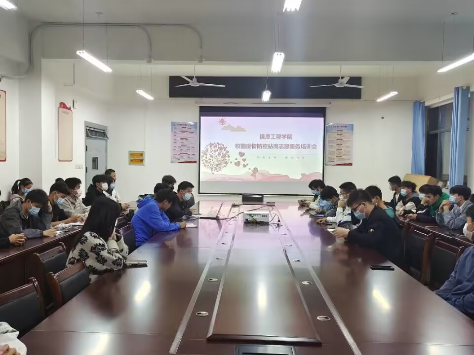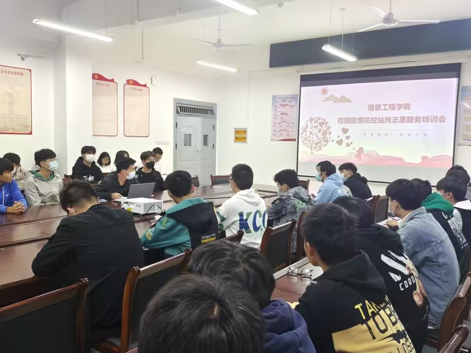 本站讯(信息工程学院刘嘉妮 学生记者钱盼)为了保障校园疫情防控站岗志愿服务活动顺利开展,全力以赴守护好校园防疫安全防线,我院于10月12日在智云楼B501开展了校园疫情防控志愿服务培训会,信息工程学院学工科科长李纪杨及各班负责人参与会议。
