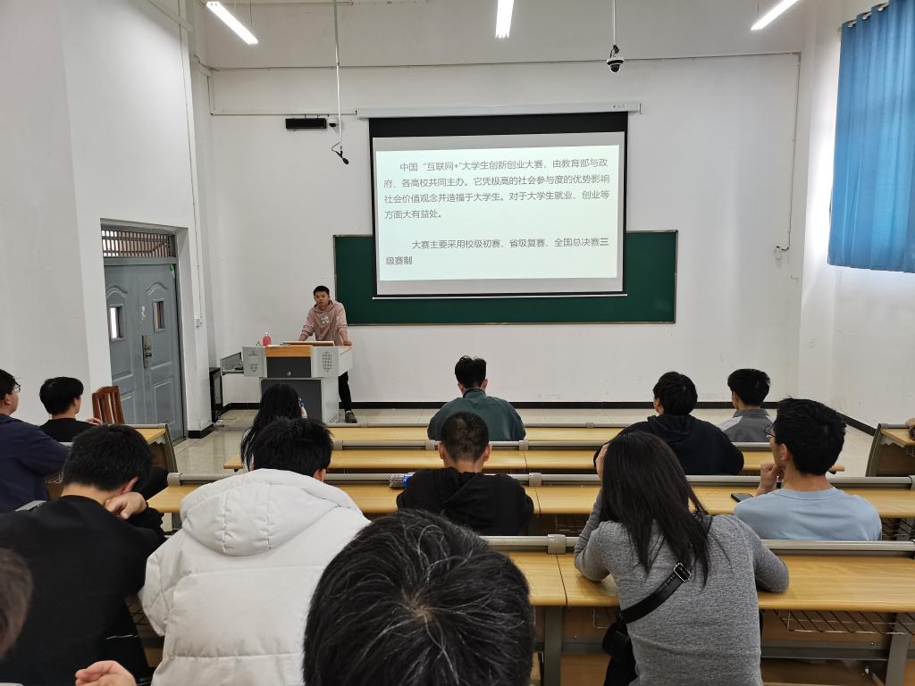 会议中,黄彪老师详细给同学们介绍了大赛项目的相关内容,从大赛概况、项目选题、案例分析、注意事项等几个方面展开叙述并强调该项目对于青年大学生的重要性。随后,刘嘉妮老师鼓励同学们要多学习多思考,把握机会,勇于挑战,积极主动参与,在创新创业中实现自我价值和个人梦想,在不断的实践中提升自己,增长才能。