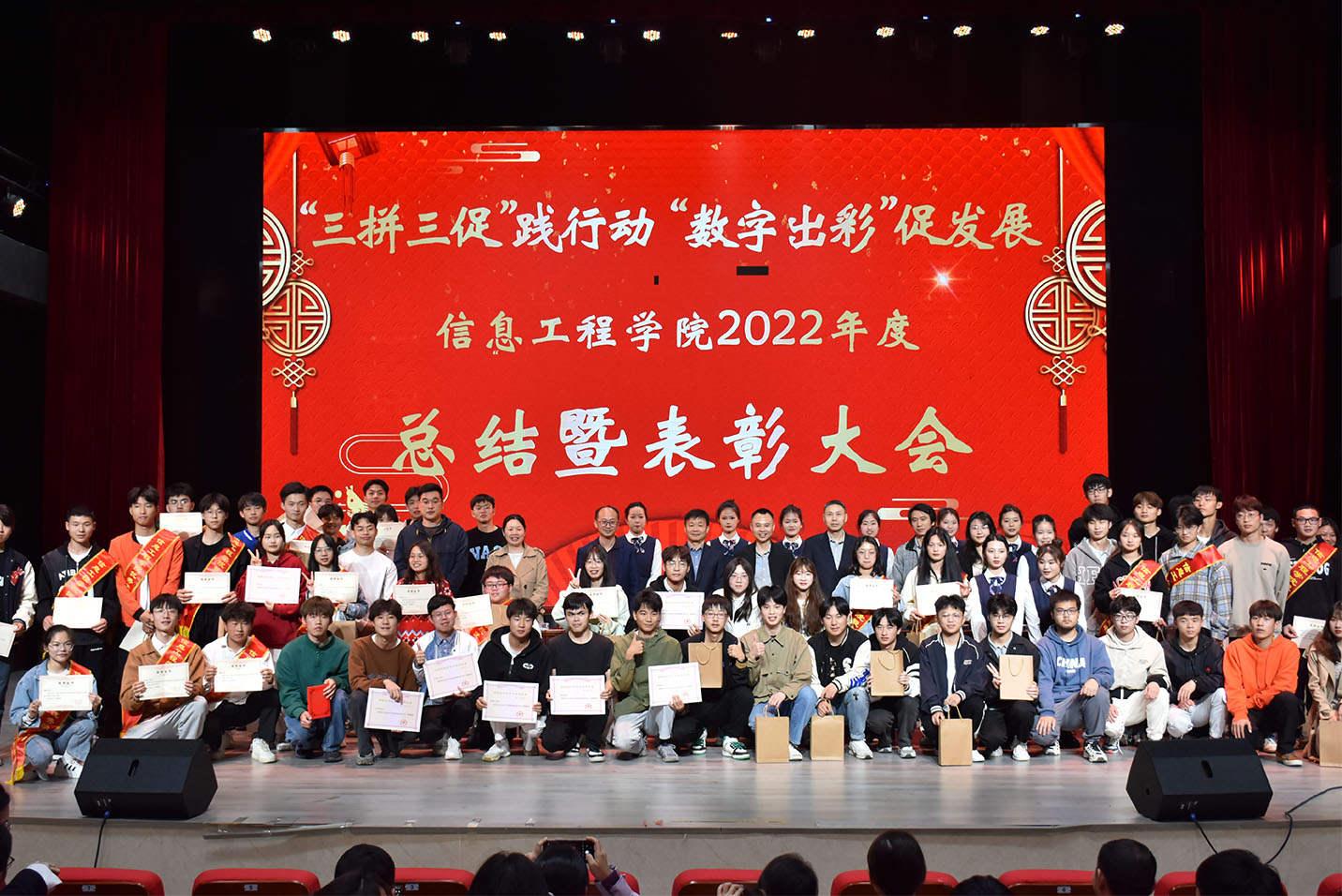 本次表彰大会展现了新时代信息工程学院青年学子积极向上的精神风貌,充分发挥了先进典型的示范和引领作用,将激励更多的学生向着优秀学生看齐,汲取榜样力量,踔厉奋发、笃行不怠。