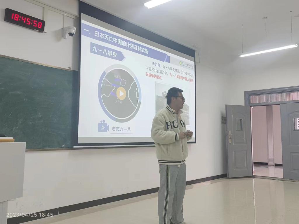 本次授课由张保揭老师主讲,以中华民族的抗日战争为主题,讲述了在中国共产党的领导下,无数仁人志士矢志不渝,奋起抗争,为新中国的成立抛头颅,洒热血,留下一篇篇波澜壮阔、瑰丽绵长的历史史诗,谱写一首首气壮山河、舍生忘死的生命赞歌。