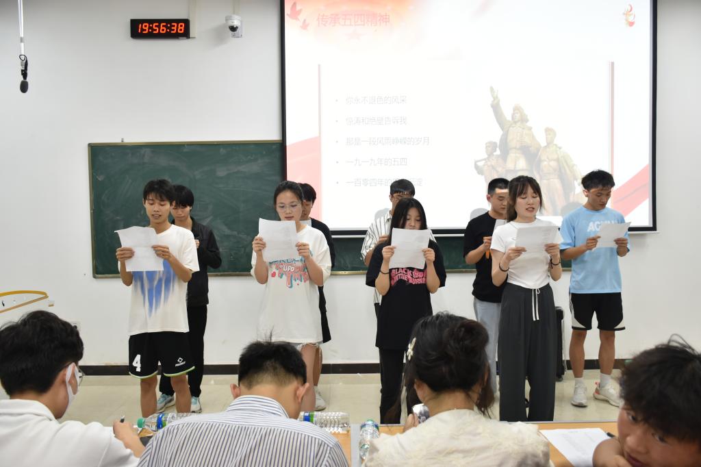 本站讯(信息工程学院 黄彪 刘嘉妮 学生记者 黎颖慧)为激发广大同学们爱国主义情怀,弘扬五四精神,5月16日晚,信息工程学院于正心楼D108开展“传承五四精神,争做时代青年”为主题的合诵比赛。此次比赛学院团总支书记刘嘉妮、辅导员黄彪老师以及学生代表担任评委。