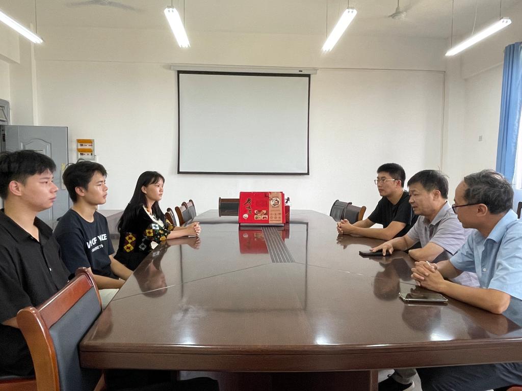 本站讯(信息工程学院 黄彪)为关心关爱学生成长,在中秋佳节来临之际,9月27日,副校长廖秋劲、信息工程学院院长简靖韡、学工负责人李纪杨在智云楼B508亲切慰问在校家庭经济困难及少数民族学生,为他们送上节日礼物和暖心问候。