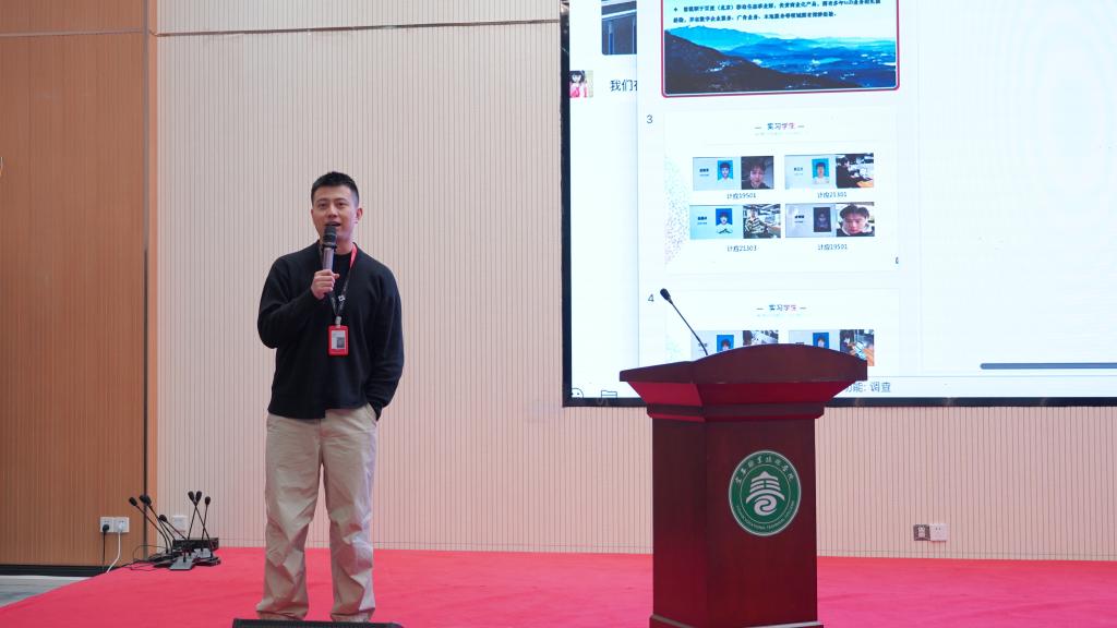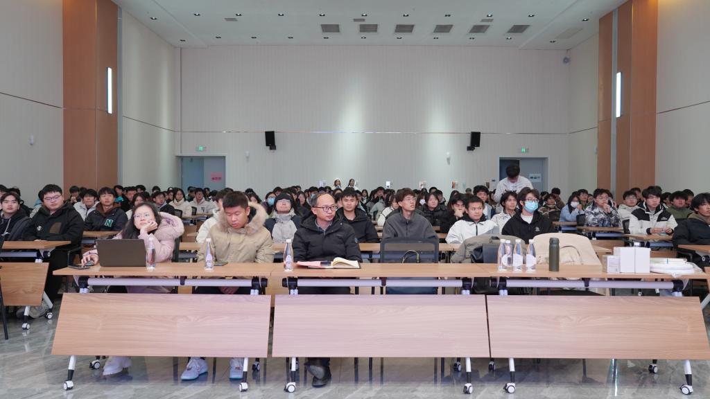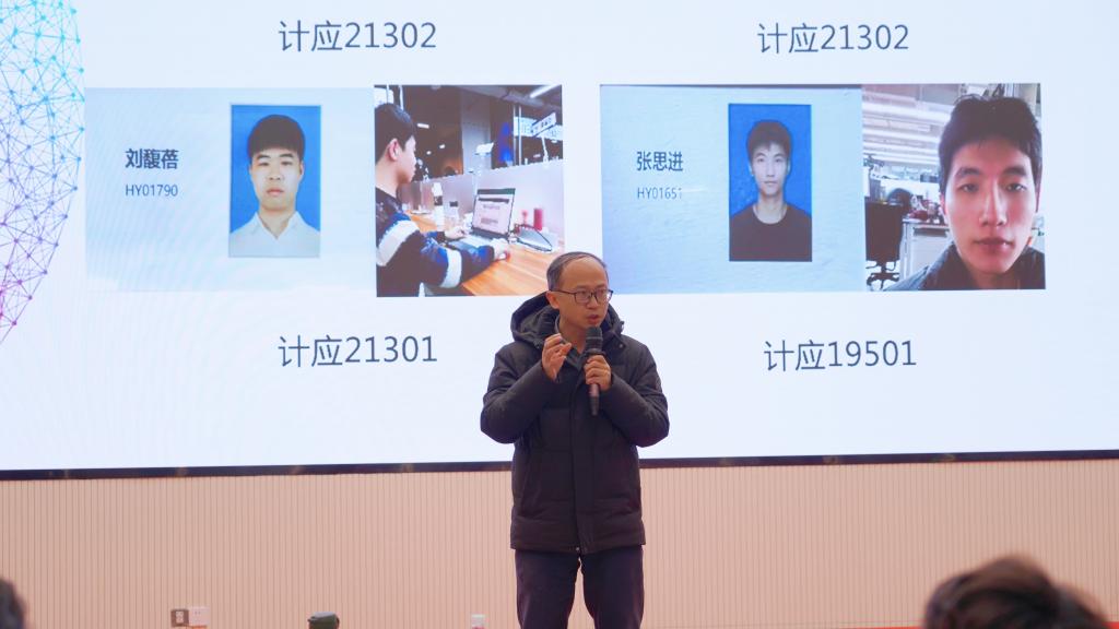 讲座邀请到网易数帆低代码专家洪建强现场为师生们作CodeWave产品及低代码开发和招聘岗位宣讲。洪建强通过现场连线在网易公司实习的21级学生代表金瀚洋,以视频交流的方式将现场带入网易低代码开发工程师的真实工作情景,深入讲解了CodeWave低门槛、高上限全球一体化平台的发展现状和未来前景,并宣布网易公司将与学院开展第二期校内低代码培训班。最后,简靖韡为培训班致辞,鼓励大家把握学习机会,深耕技术领域,挖掘更多学习潜能,为将来的职业道路打下坚实的基础。