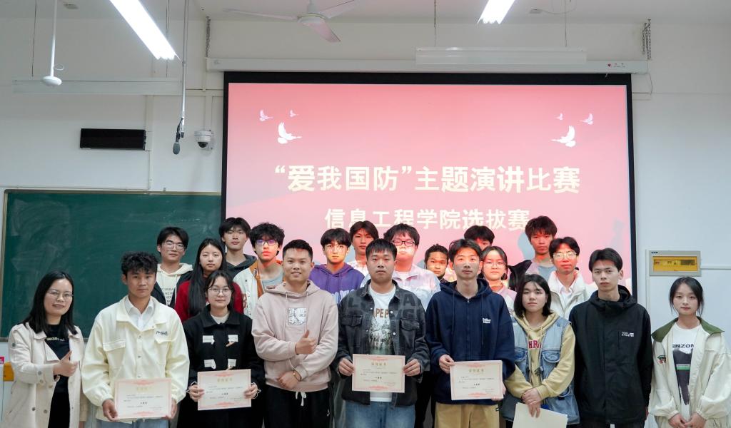 本站讯(信息工程学院 黄彪)为深入推动新时代全民国防教育深入普及,不断丰富学校国防教育实践载体,3月27日晚,信息工程学院在和济楼C304开展“爱我国防”主题朗诵比赛。此次比赛由黄彪、谢小欣、张为岷三位老师及两位学生代表担任评委。