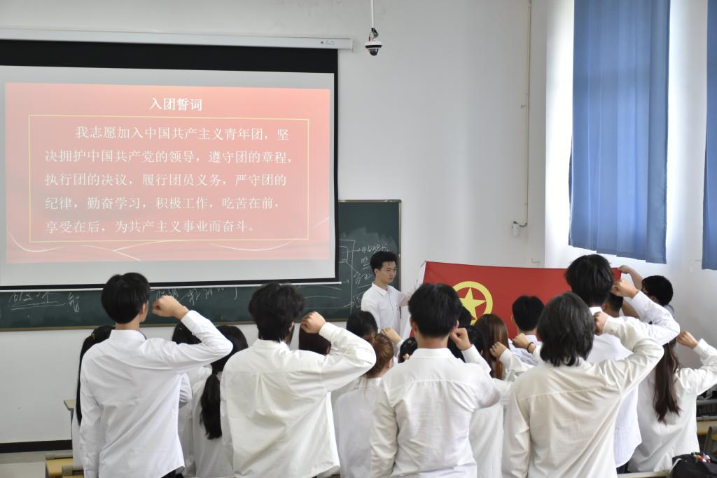 入团仪式在庄严的国歌中拉开帷幕。李继威宣读新团员名单,老师们为新团员颁发团员证、佩戴团徽。黄彪带领新团员庄严宣誓。新团员代表冯毅发言表示要以更高的标准要求自己,努力学习,积极参与社会实践,为实现自己的梦想、为国家的发展贡献力量。优秀团员代表钟淑珍发言,表示会牢记团员的身份和责任,严格要求自己,遵守团的纪律,发扬团的优良传统,在团队中相互学习、相互帮助,共同进步。简靖韡向新团员们致以热烈祝贺并提出希望和要求,他勉励新团员要坚定理想信念,加强学习实践,锤炼品德修养,充分发挥模范作用,牢记团员的使命和责任,以更加饱满的热情和更加坚定的信念投身到学习工作中去。