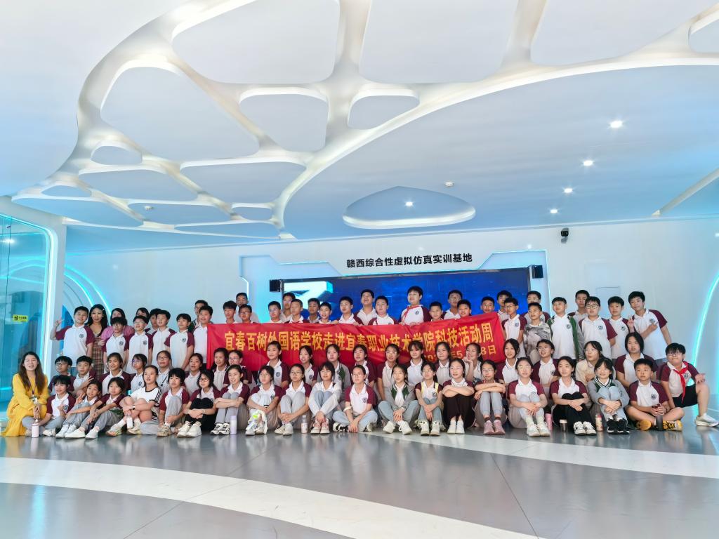 本站讯(信息工程学院 谢小欣)5月28日上午,宜春百树外国语学校师生一行85人来开云官网开展“科技活动周”主题研学活动,深入学习体验VR(虚拟现实)应用设备,感受科技教学的无限魅力。