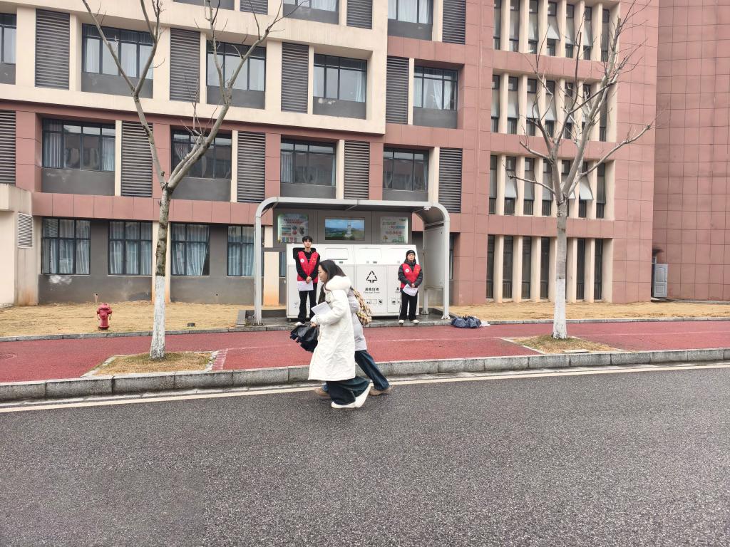 志愿者们来到学校各处垃圾箱旁,通过现场演示垃圾分类换取积分操作步骤,向同学们详细普及垃圾分类的基本知识,分享垃圾分类的实用价值,鼓励同学们从点滴小事做起,养成垃圾分类的良好习惯,引领同学们将环保理念融入到日常生活之中。