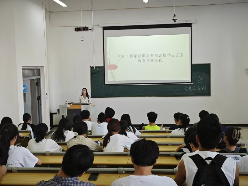 本站讯(信息工程学院 刘娟 )为扎实推进国庆假期安全工作,切实抓好假期留校学生安全稳定工作,9月30日上午,信息工程学院在智云楼B102召开国庆假期留校学生安全教育会议。会议由辅导员刘娟主持,全院留校学生参加会议。